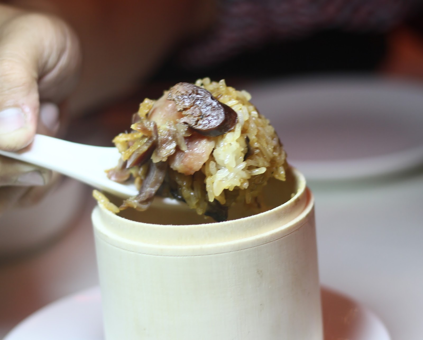 By this time, we were all getting rather full, as that soup was quite filling, and we already had the bamboo rice, so I think Eddy was trying to get us into a food coma. The main rice dish, the Claypot Rice with Chinese Waxed Meat and Edamame, really filled us up. What a jolly good idea to add edamame to the lap mei fan dish...